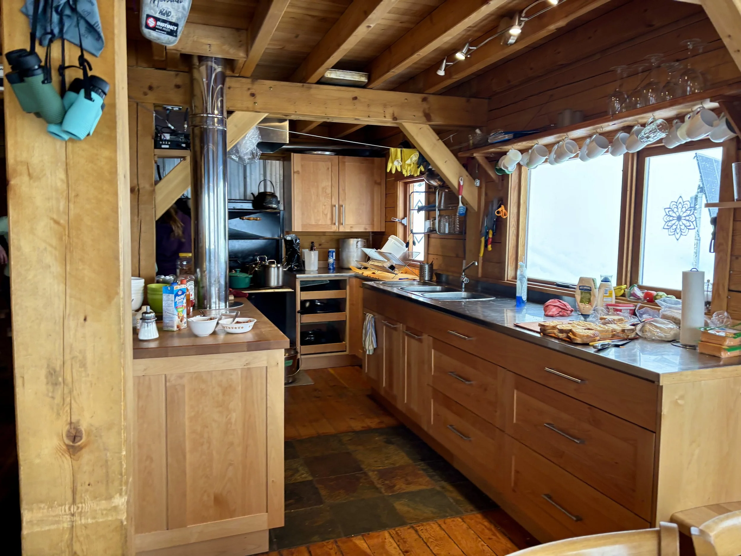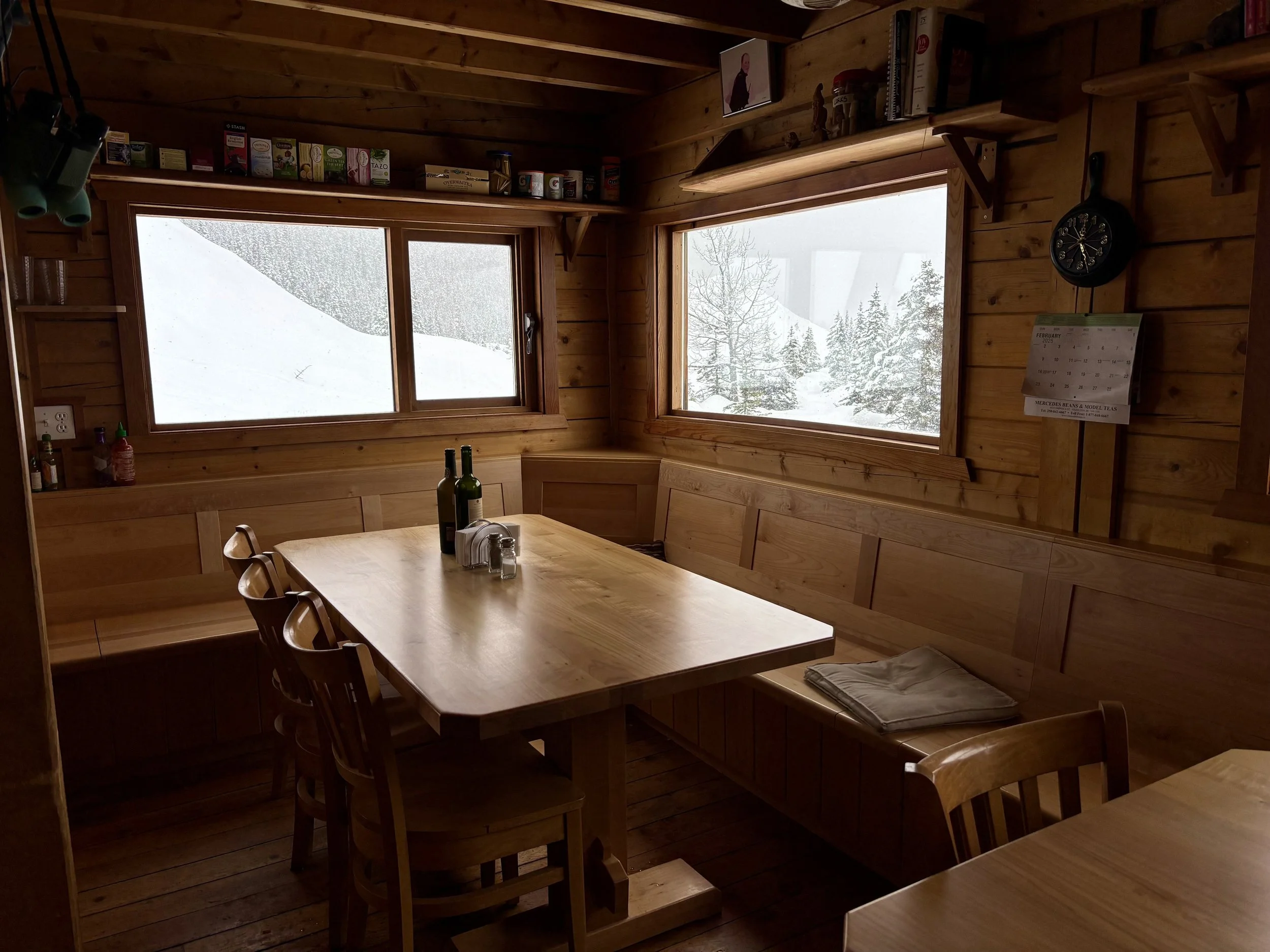 One of the highlights of the hut was the food. The chef who was there when we were, Anna, was fantastic. Breakfast was delicious every morning and always something different. Lunches would be made after breakfast and included a decent spread of options to make sandwiches and included other food for snacks. Every day when we got back to the hut after skiing, warm soup would be waiting for us. Dinner and desert were also delicious every night and there was never an evening where I went to bed wishing there was more food.
