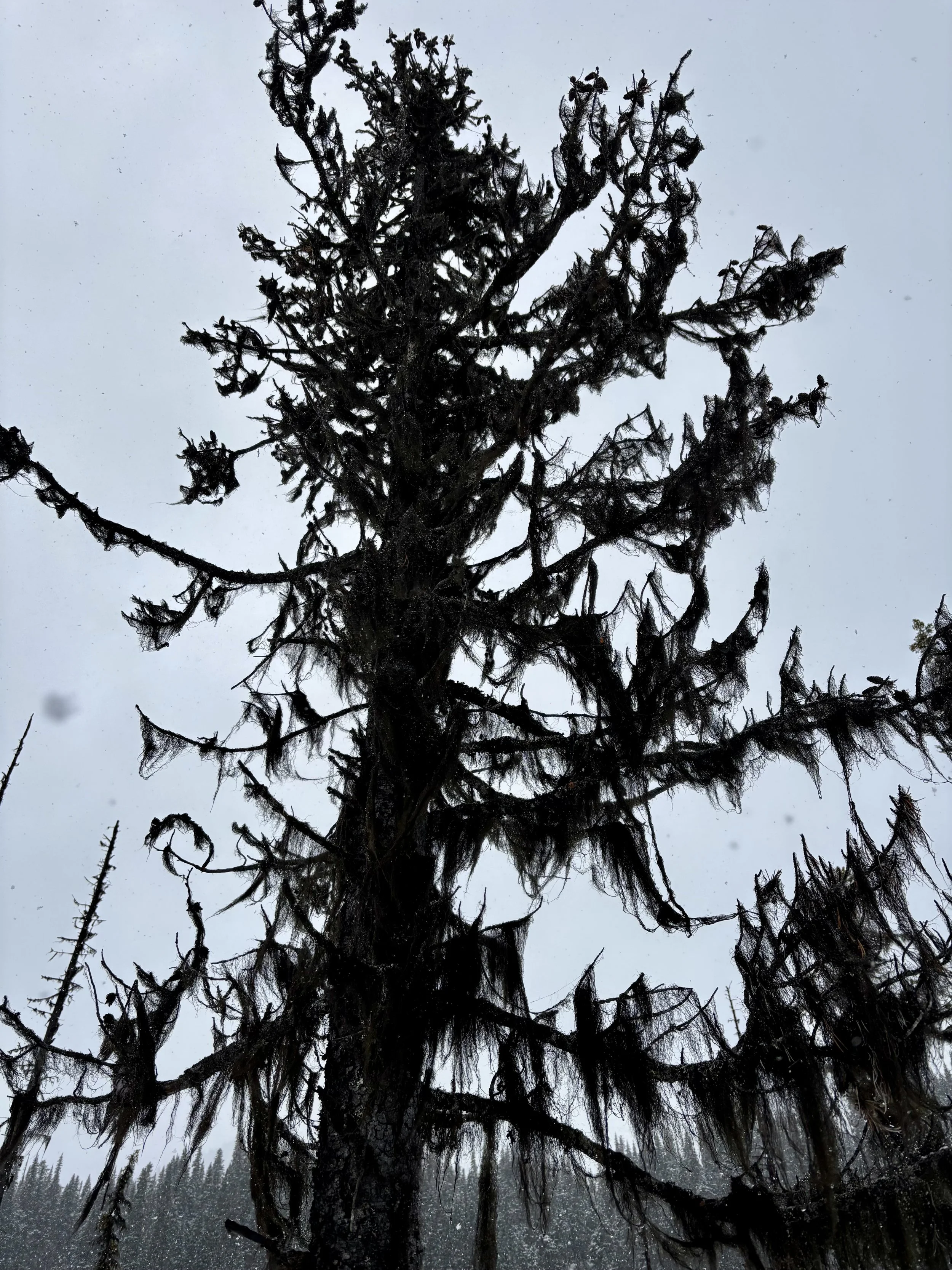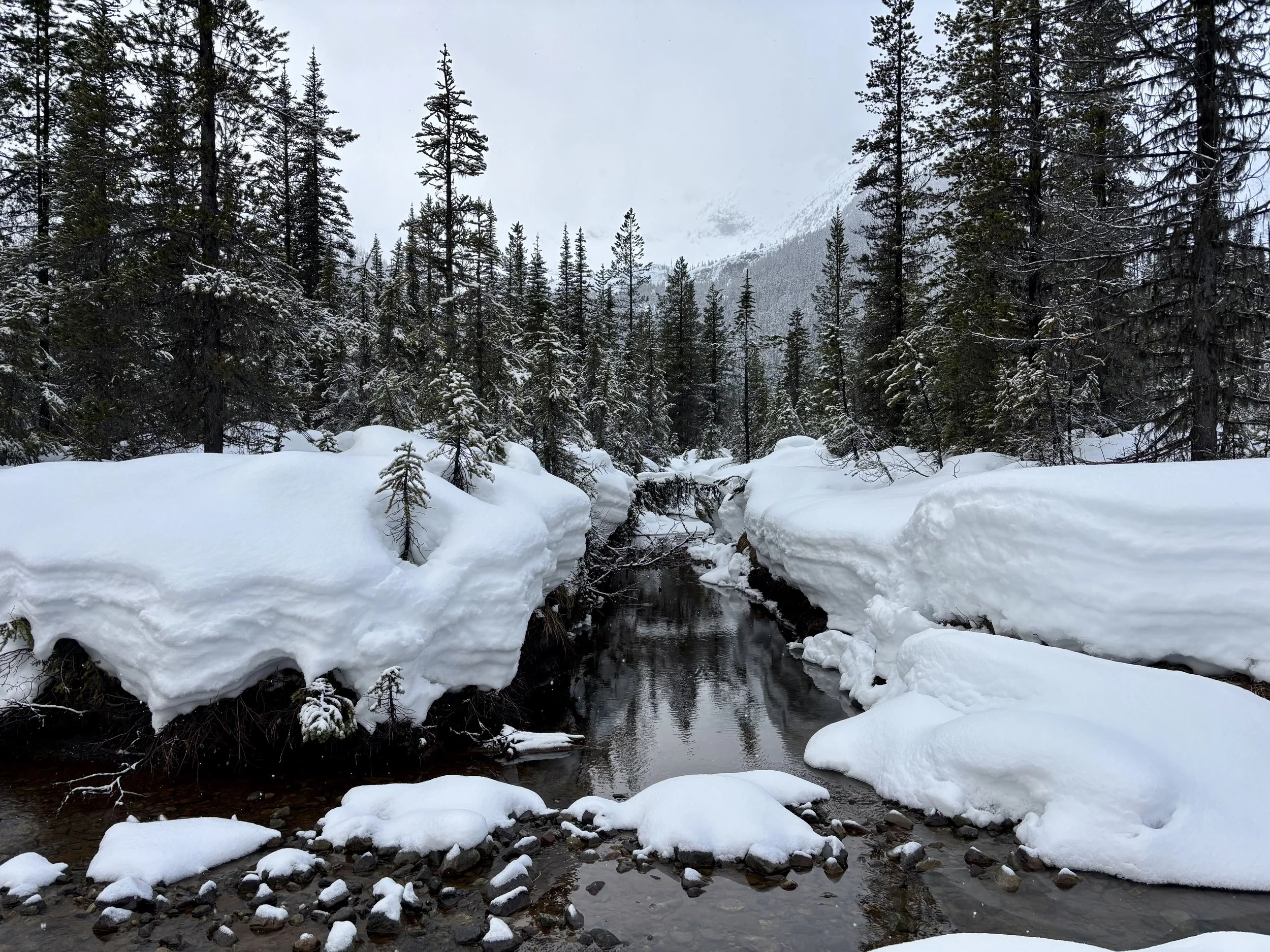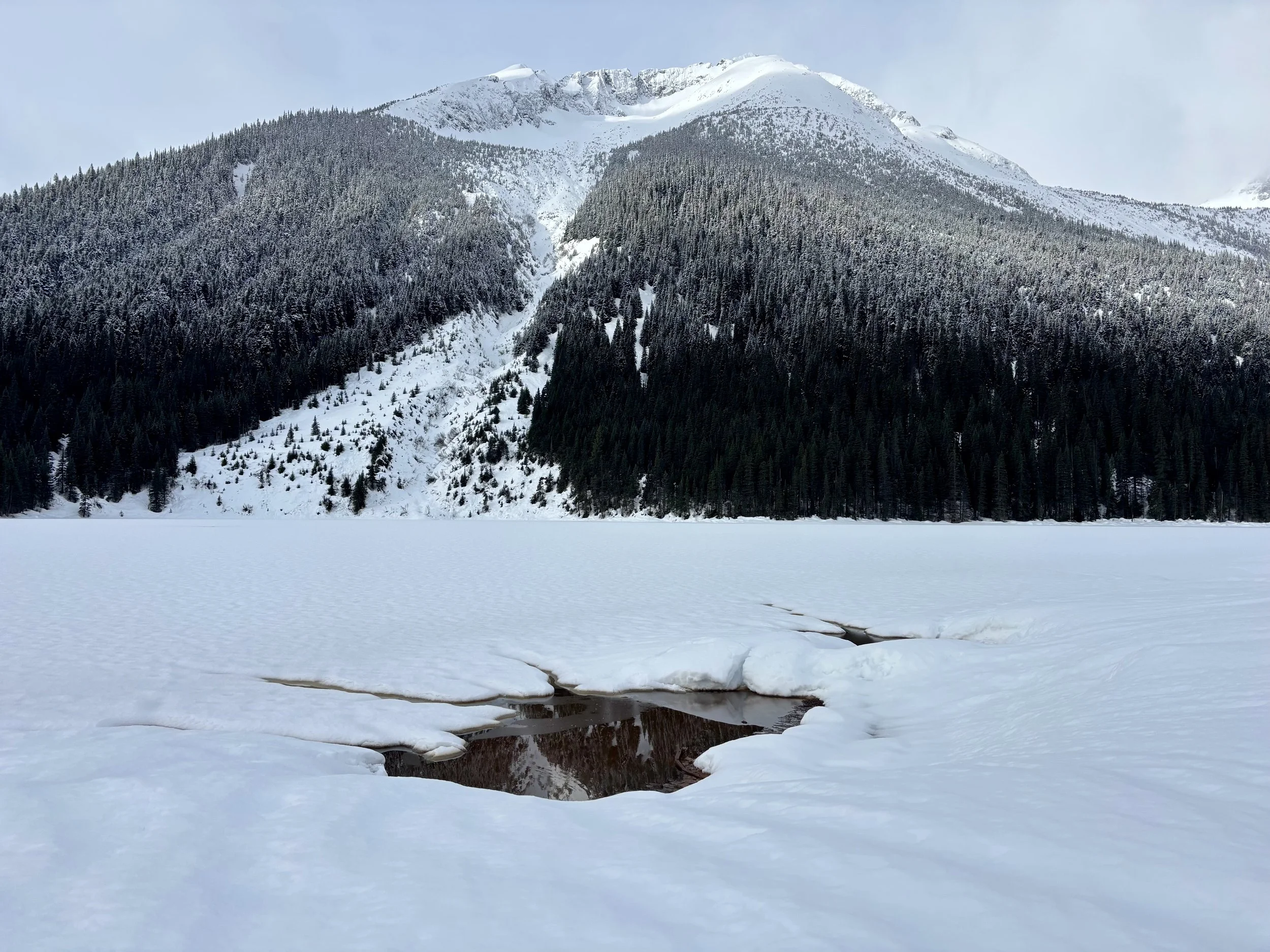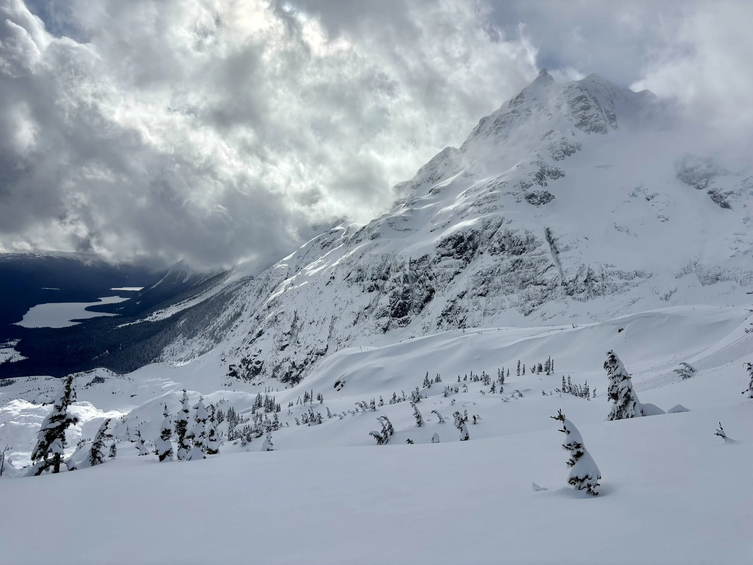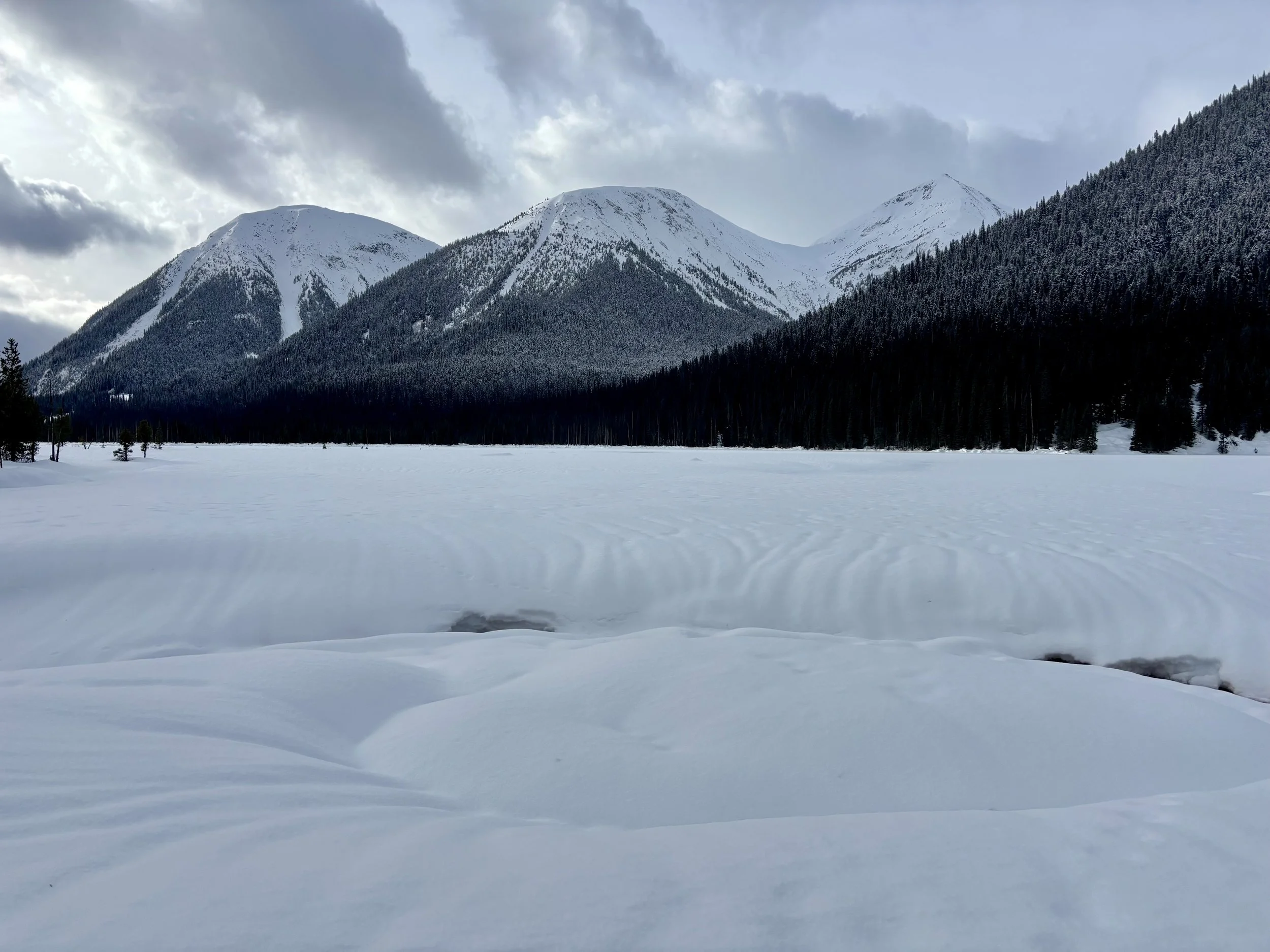 Feeling like I was in a better mindset after the day off, I decided to head out skiing again the following day. We once again took the skin track up towards Tom George. At the decision point of whether we should go to the glacier or ski the trees, I voted trees with the primary reason being it was totally flat light, and I was worried about getting injured if we went up any higher. I said the snow where we were standing at the bottom of the trees felt quite good and it was what I wanted to ski. I was then told by Conor that the snow in the trees had a crust that wouldn’t ski well and risk of injury was high there. I didn’t observe this crust he mentioned and think it was just a way to convince us to go up to the alpine. Once again frustrated, I followed the group up to the alpine. Once we got to the spot where we had turned around 2 days before, I voiced that I was 100% going to turn around regardless of what others wanted to do because visibility was so poor, and I didn’t want to be in connected, alpine avalanche terrain with a large group of people in considerable avalanche danger with limited visibility (our guides rated the avalanche danger as considerable that day above tree line, while AvCan rated it as high - I did not know this at the time. The avalanche forecast for the region said “Dangerous avalanche conditions exist. Avoid large slopes, overhead hazards, and steep terrain” ). So the group split up and several of us skied back down the way we had come up with one of the guides. On the way down, I had zero visibility and at one point found myself in free fall into a wind scoop. This was exactly what I was trying to avoid. Thankfully, I was uninjured and able to get out of the scoop by myself. We then headed over to the trees that I had pushed to ski earlier than morning. As we were ascending, remarks were made about how good the snow felt from others. I agreed and this is why I wanted to ski this terrain in the first place! When Conor met us there on his second lap, he said that because we gave the slope time, the crust disappeared. It had been maybe an hour since he had made the comment about the crust in the first place and there was no sun or warm temps to soften the snow. What made the originally mentioned “crust” disappear? I think the fact that it didn’t exist in the first place. I did two laps in the trees and then we headed back to the hut.
