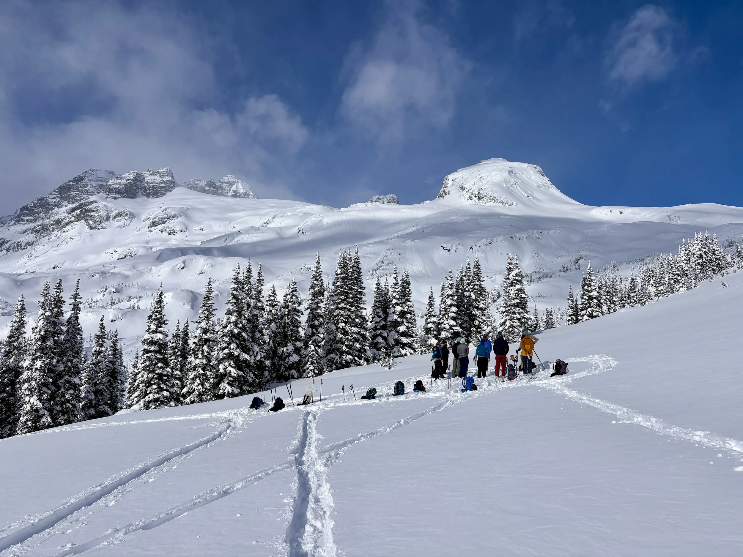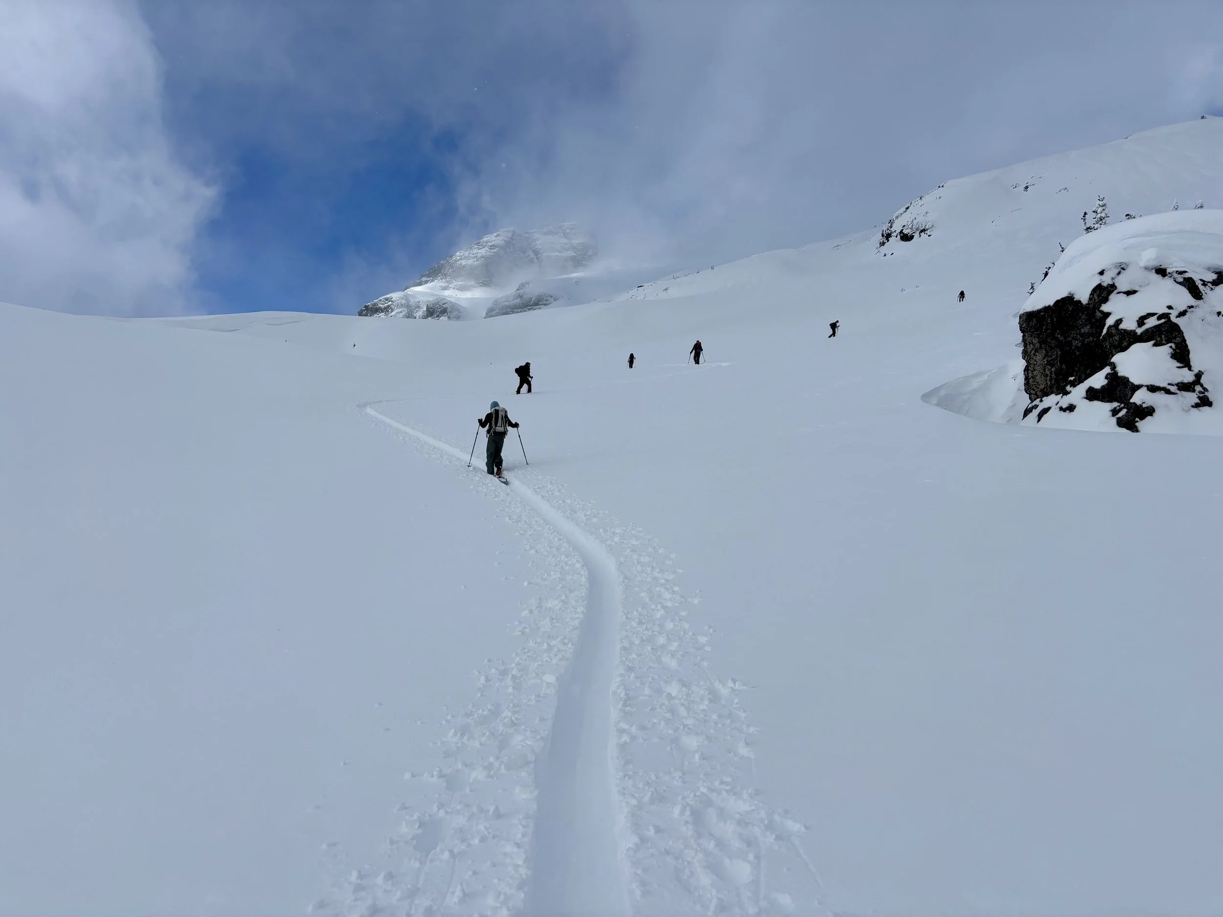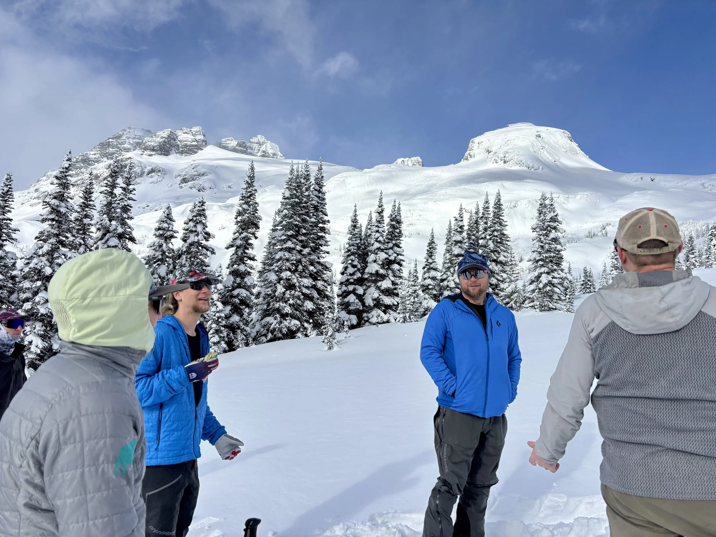 The following morning was the closest thing I think we had to a debrief. Risk tolerance going forward was discussed and the guides offered to run the rest of the week as more of a course where we could ask as many questions as we wanted and could be a bigger part of the decision making process. We all liked that idea and agreed. We headed out on the same skin track that we used on the first full day towards Tom George. As we approached the bottom of the glades we had skied two days before, we came to a decision point. Did we want to go up to the glacier, which involved more exposure to avalanche terrain or did we want to ski the same trees we had skied two days prior? I was one of the first people to speak up and voted for the trees because it was a) safer and b) a group of our size in avalanche terrain with such an unstable snowpack seemed unwise. I got told by one guide that I have a new school way of thinking with point b, but I shouldn’t discount the old school way of thinking where more people equals more rescuers. I said I preferred not needing rescuers, but the conversation didn’t continue any further. Ultimately, it felt like the group was split between going up to the glacier and skiing the trees. The guides wanted to go to the glacier so that is the way the whole group ended up going. We agreed to go to what is called Breakfast Rock and then make a decision about whether or not to continue from there. When we got to the rock, Conor recommended we continue by going up the ridge above the rock. I felt good with this plan and voiced that, but also said I didn’t want to go into the bowl next to the ridge as there was avalanche terrain above it. What ended up happening is Conor cut the skin track right into the middle of the bowl, which was the opposite of what he said he would do. He told us to space out and follow him. Once we got to the top of this section, there was discussion about if we should continue going higher or not. The next slope would require going through above tree line avalanche terrain. Again, there were some folks that were ok going and others who weren’t. Conor started cutting a track and a few hundred feet into it started digging around in the snow with his hand, pulled out a consolidated block of snow, threw it down the hill, and turned us all around. He said he didn’t like what he found. So we ended up skiing back down the bowl we came up, thankfully without any incidents. That night, I felt pretty frustrated with how the day went. My concerns didn’t feel heard, and it seemed that we were going to just do whatever the guides wanted to do regardless of my comfort level.