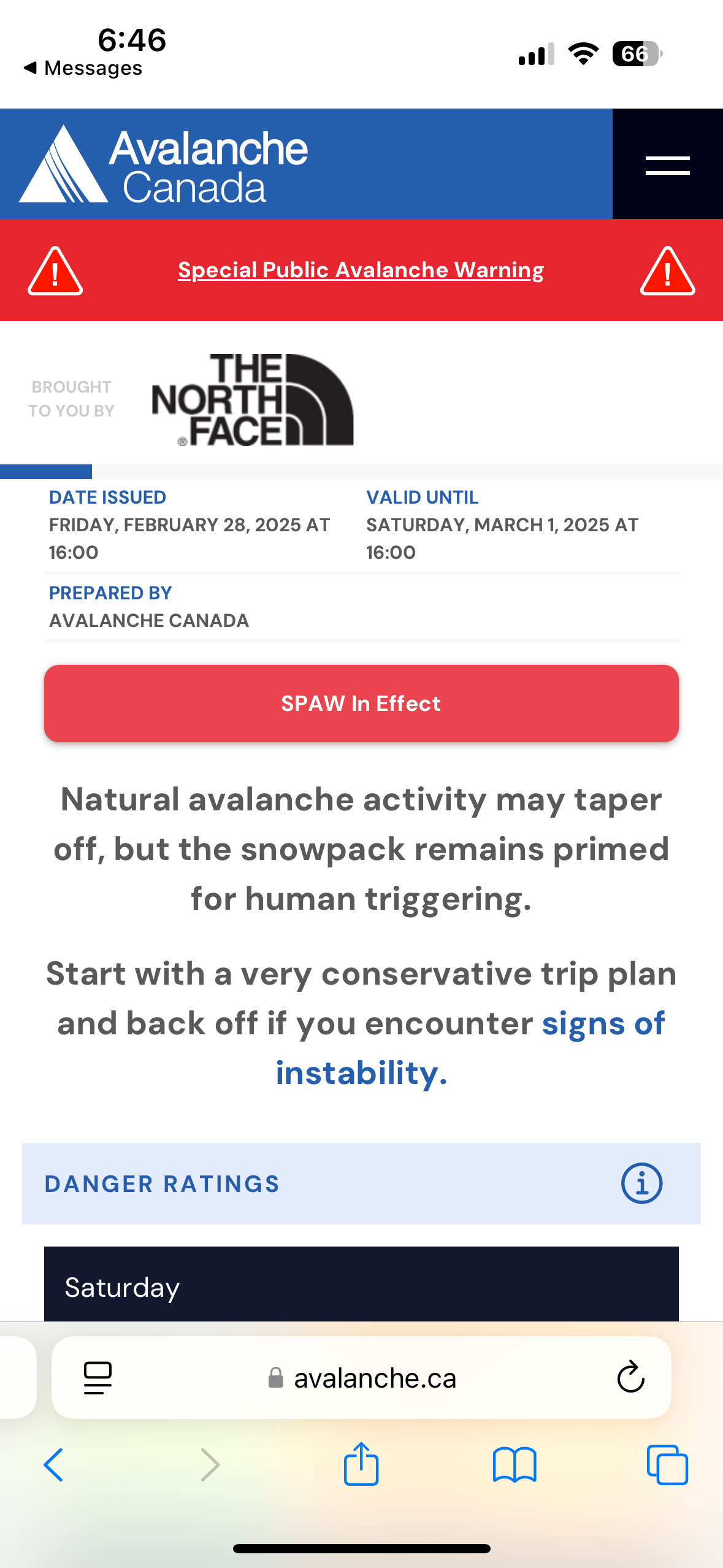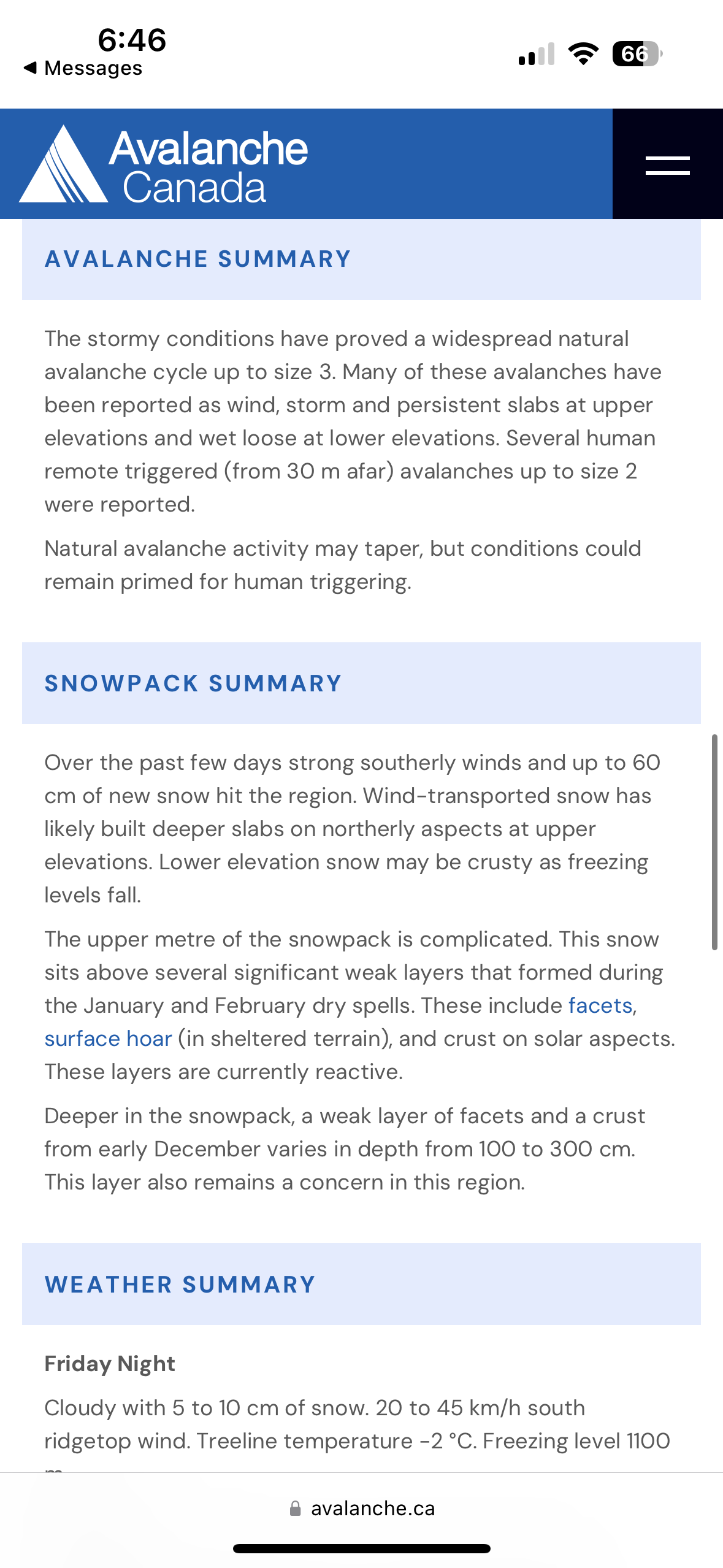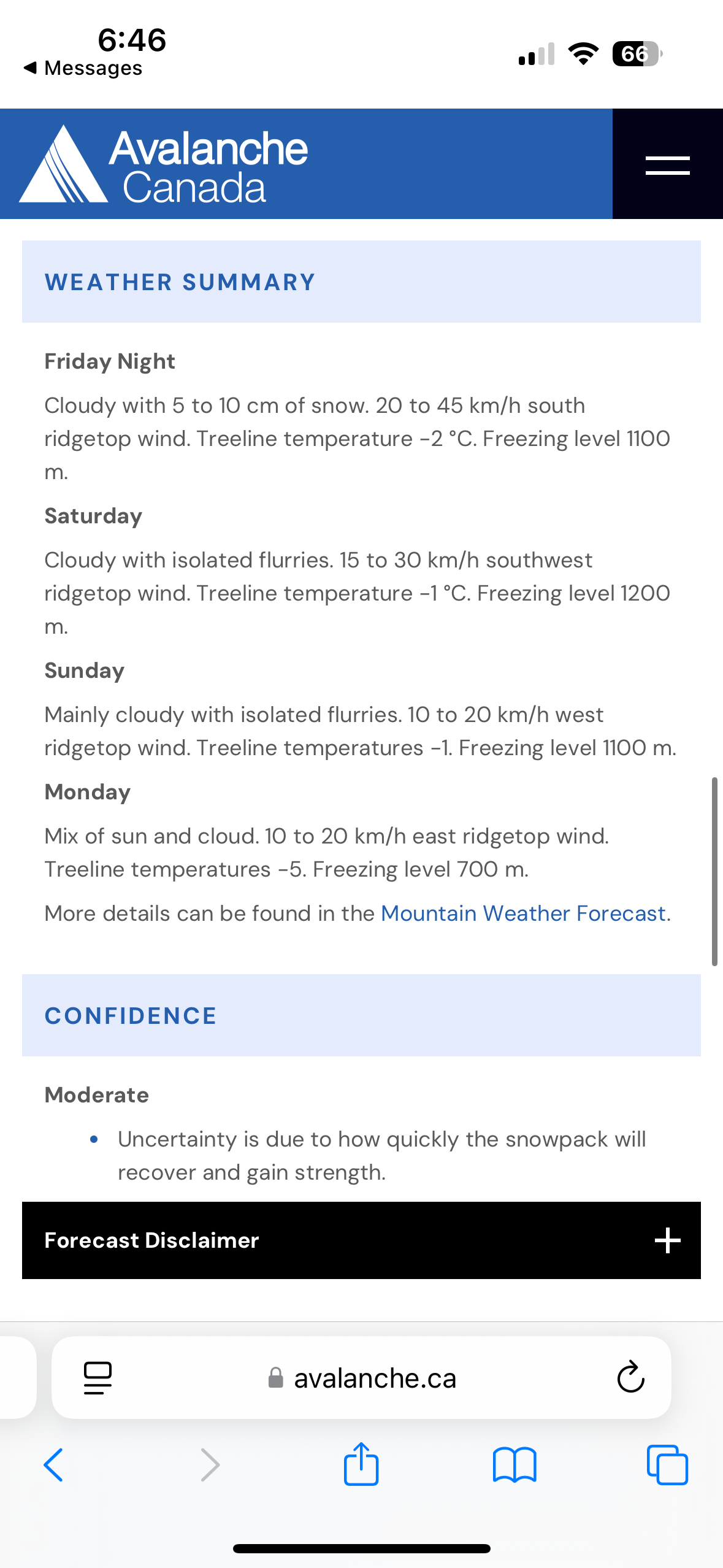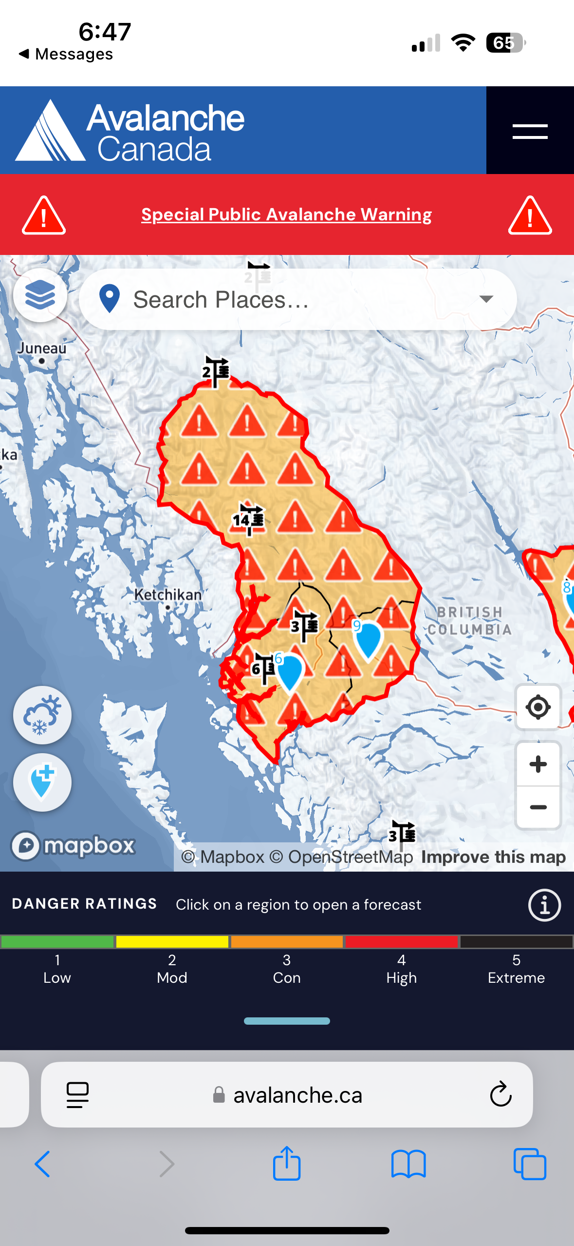The final day couldn’t come soon enough, and we were flown back out to Smithers. Mike and I had plans to stay in Smithers and potentially do some more skiing in the area. That day I checked the Avalanche Canada forecast when we got settled at our Airbnb and when I opened the Avalanche Canada website, the first thing that popped up was a Special Public Avalanche Warning that was in effect (see photos) for the area including Burnie. The SPAW said “Dangerous avalanche conditions continue. Travel in avalanche terrain is not recommended.” Our guides never mentioned that there was a SPAW in effect. On this Burnie trip, it felt like almost every time I or others in the group had voted for a more conservative option because of how conditions felt, we did the opposite. Seeing this made me feel better about how frustrated I was and also made me feel better about the decision making I would have made. In hindsight, I do wish I had remained firmer on some of my votes, but in a group of 14 people, I have learned that it is very hard to feel heard. Overall, I found this to be an exceptionally challenging trip that came with some new learning lessons.