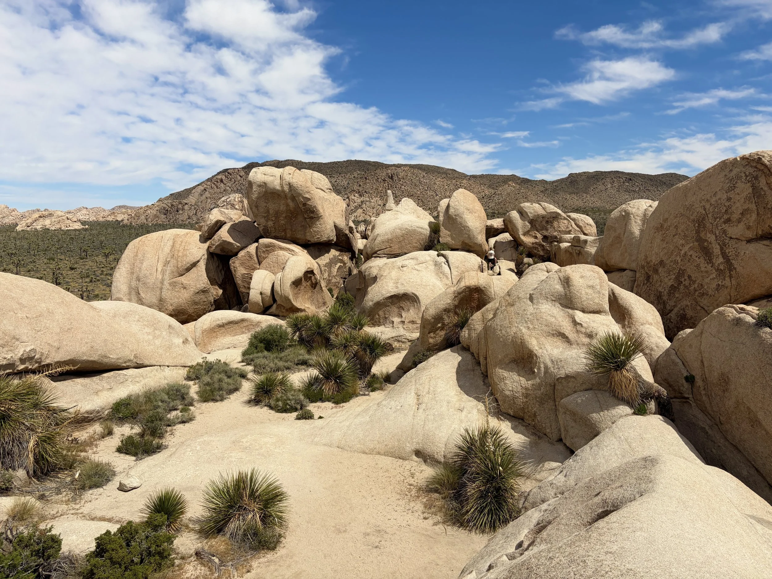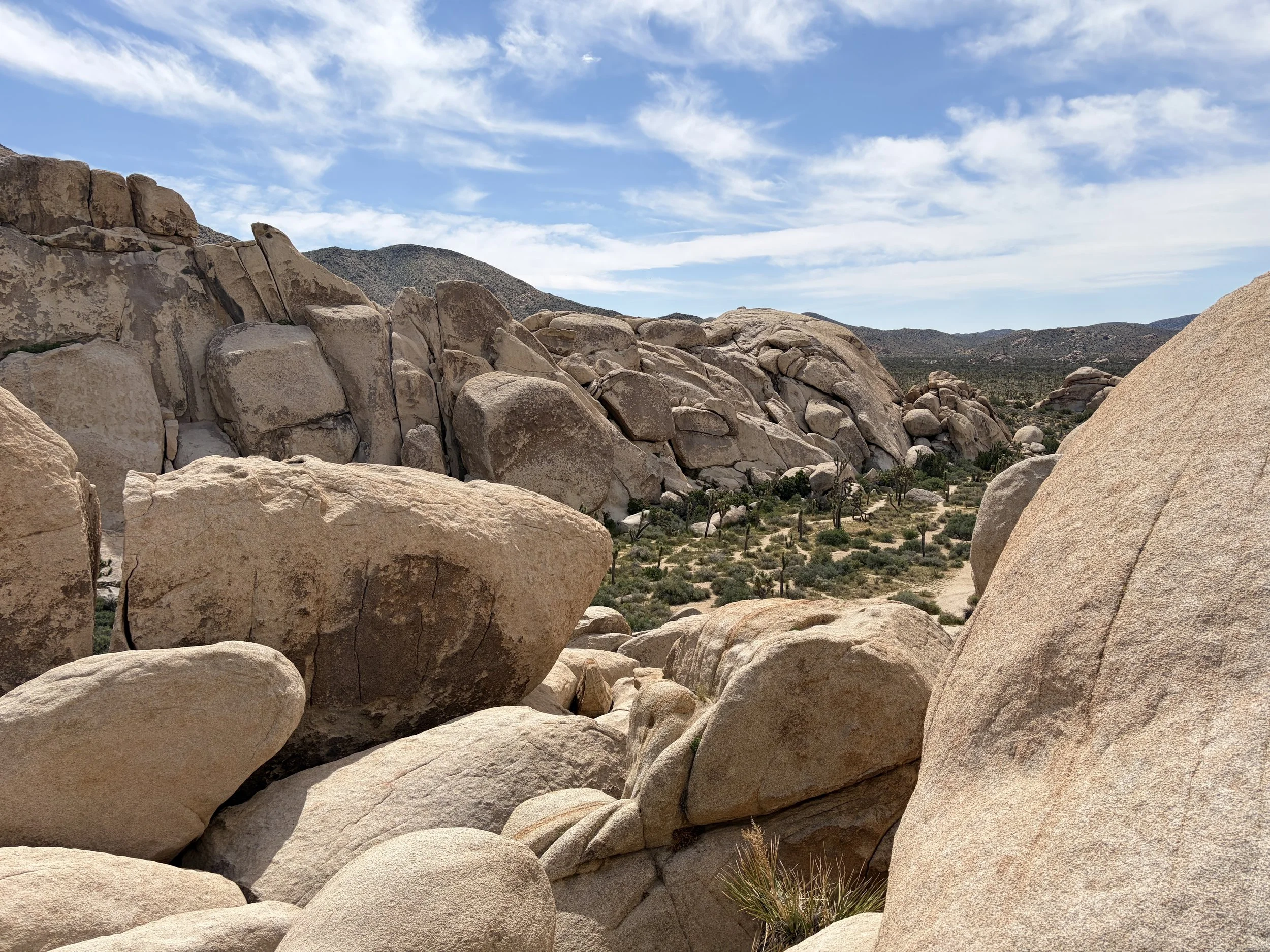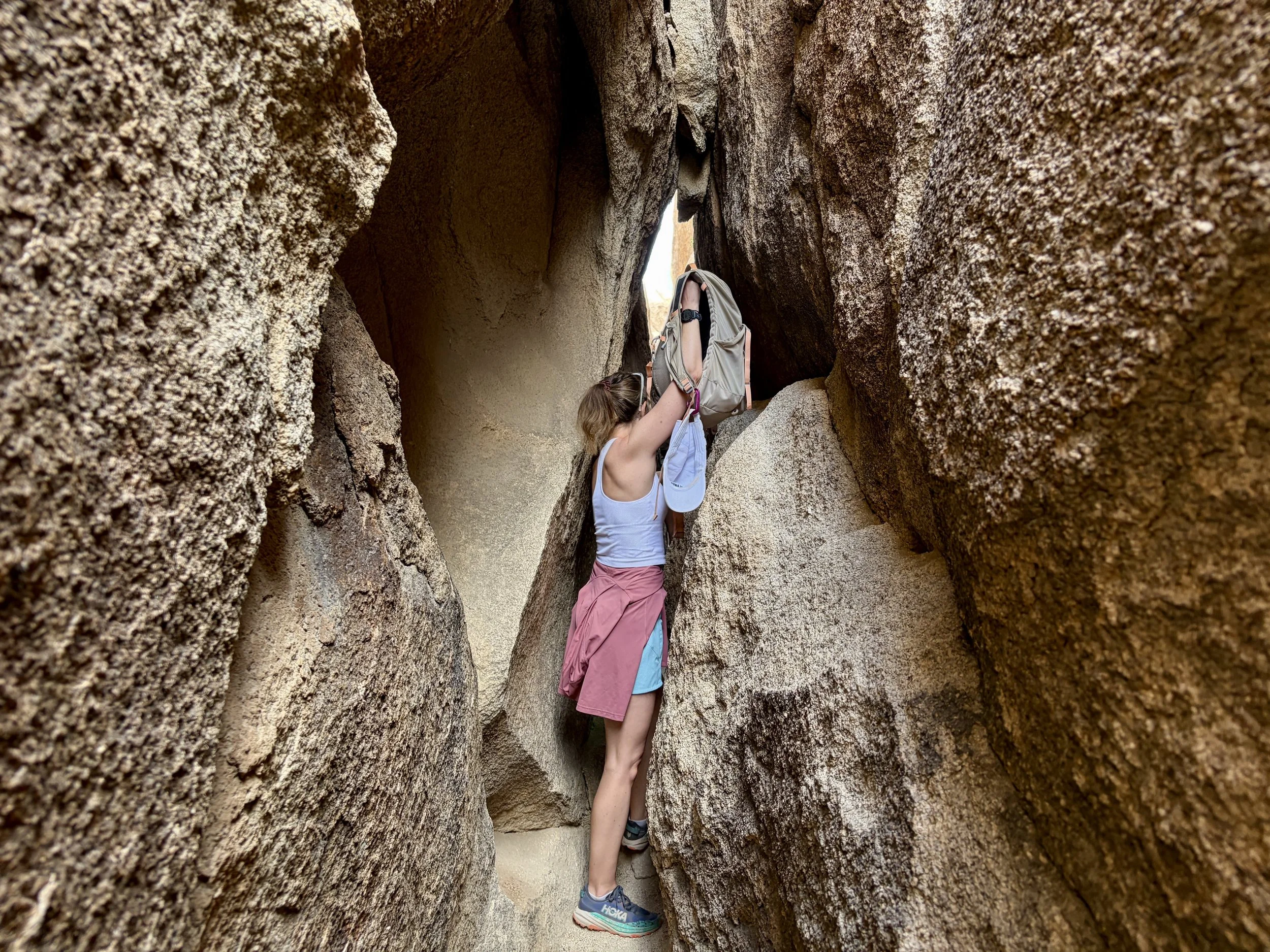 Today was my first time visiting Joshua Tree National Park. I was visiting with a friend that had previously been there, and she recommended that we check out the Hall of Horrors. We parked at the trailhead and did a 1 mile loop hike with a stop at the Hall of Horrors. There are actually two halls to check out. One is wider than the other. The narrower one ends and you have the option to go back out the way you came or you can continue and scramble while route finding your way back to the start. From what I could tell, the area supported a “choose your own adventure” mentality. You could make it as adventurous as you want. After spending ~30 minutes scrambling around, we made our way back to the car. It was a fun way to experience the park.