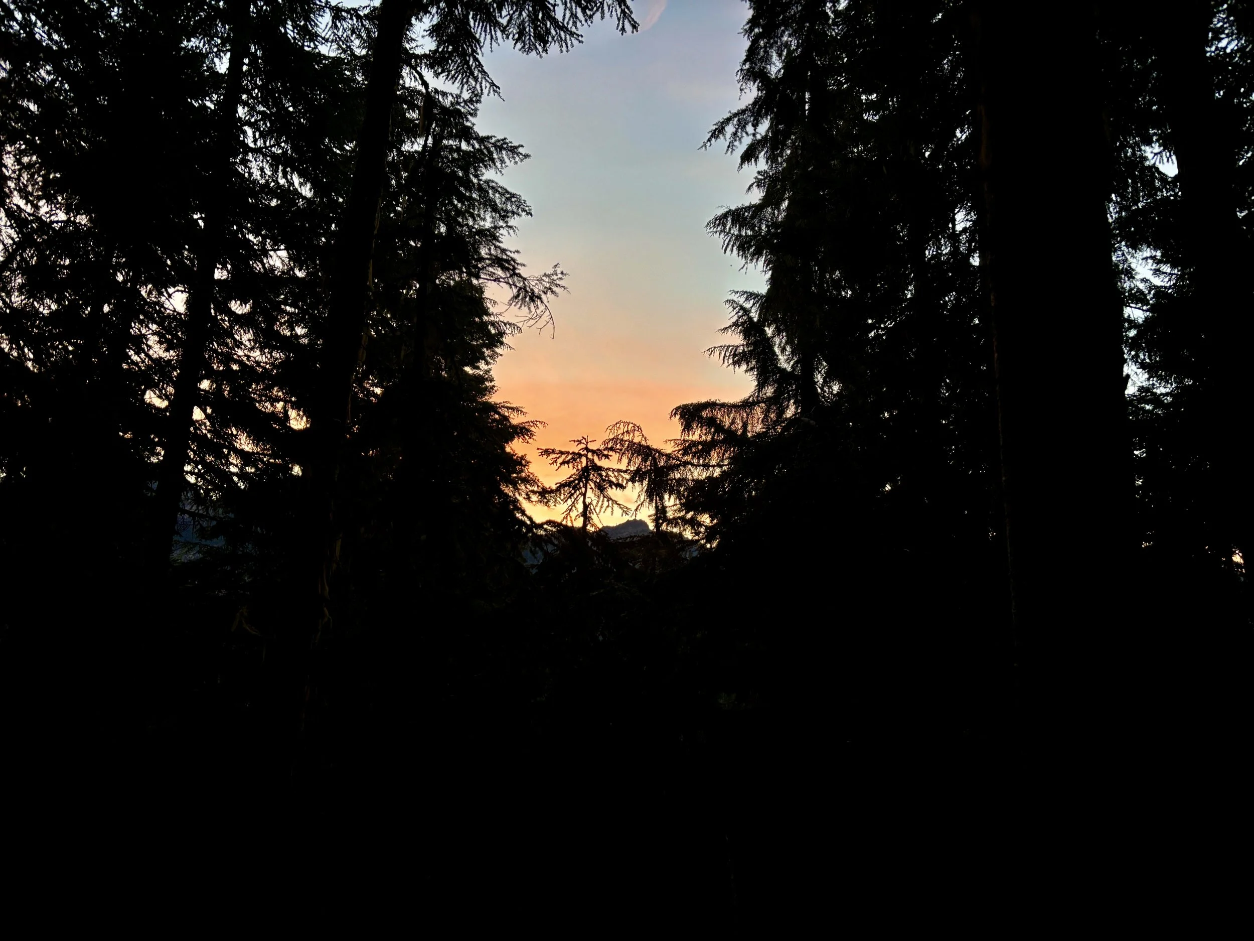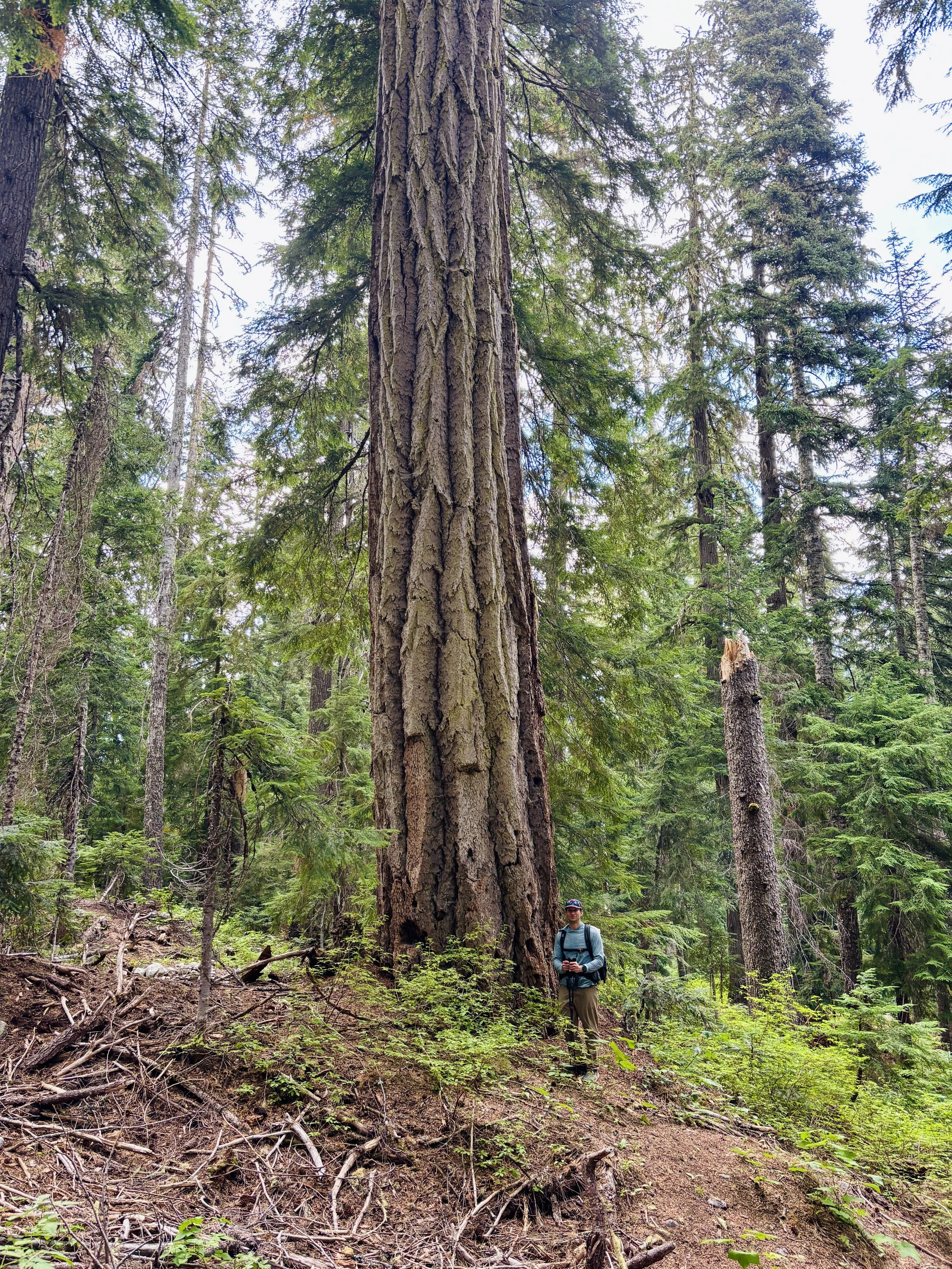 With the forecast calling for a 30% chance of rain after 11 am, we decided to get an early start and left the trailhead at 5 am. We walked in the dark with headlamps for about 30 minutes before we didn’t need them anymore. The first several miles of trail are in the woods and the trail is composed of big switchbacks. Turns out spiders also love this trail and if you are the first people down it, you will be covered from head to toe in spiderwebs. I think in the first 1,000 ft of elevation gain, I walked through 1,000 spiderwebs. I don’t think I’ve ever hiked a trail where the spiderwebs were that bad.