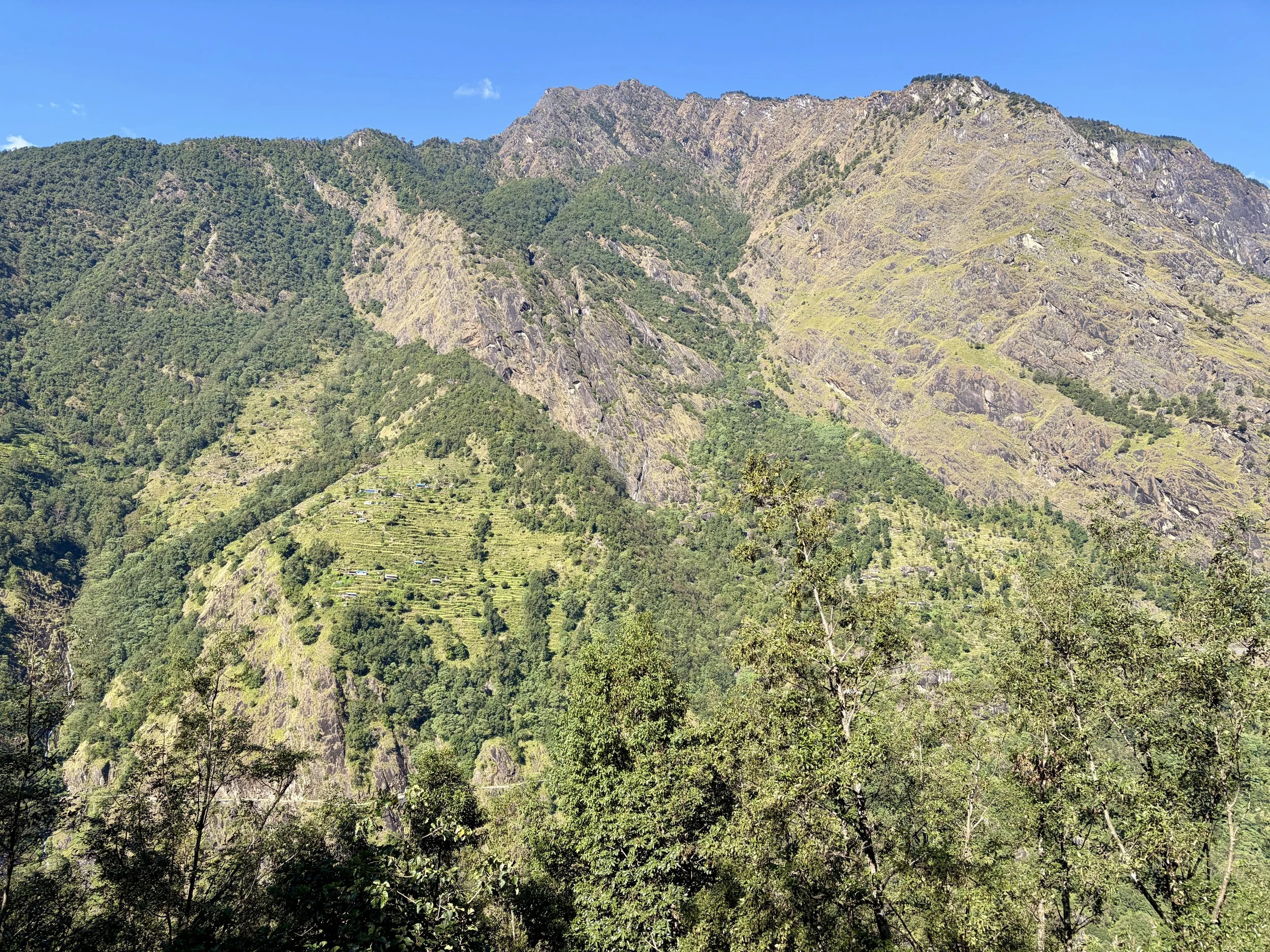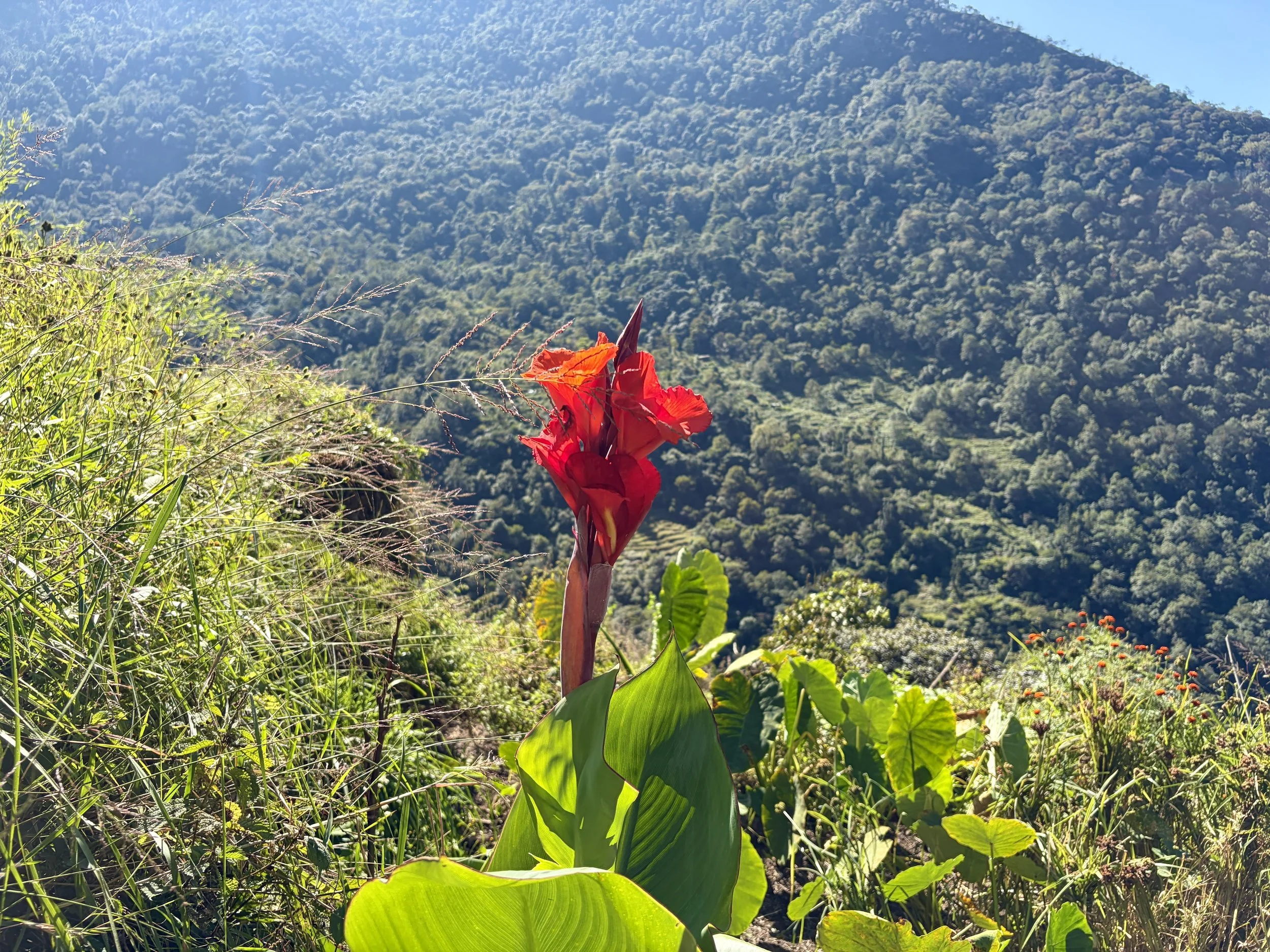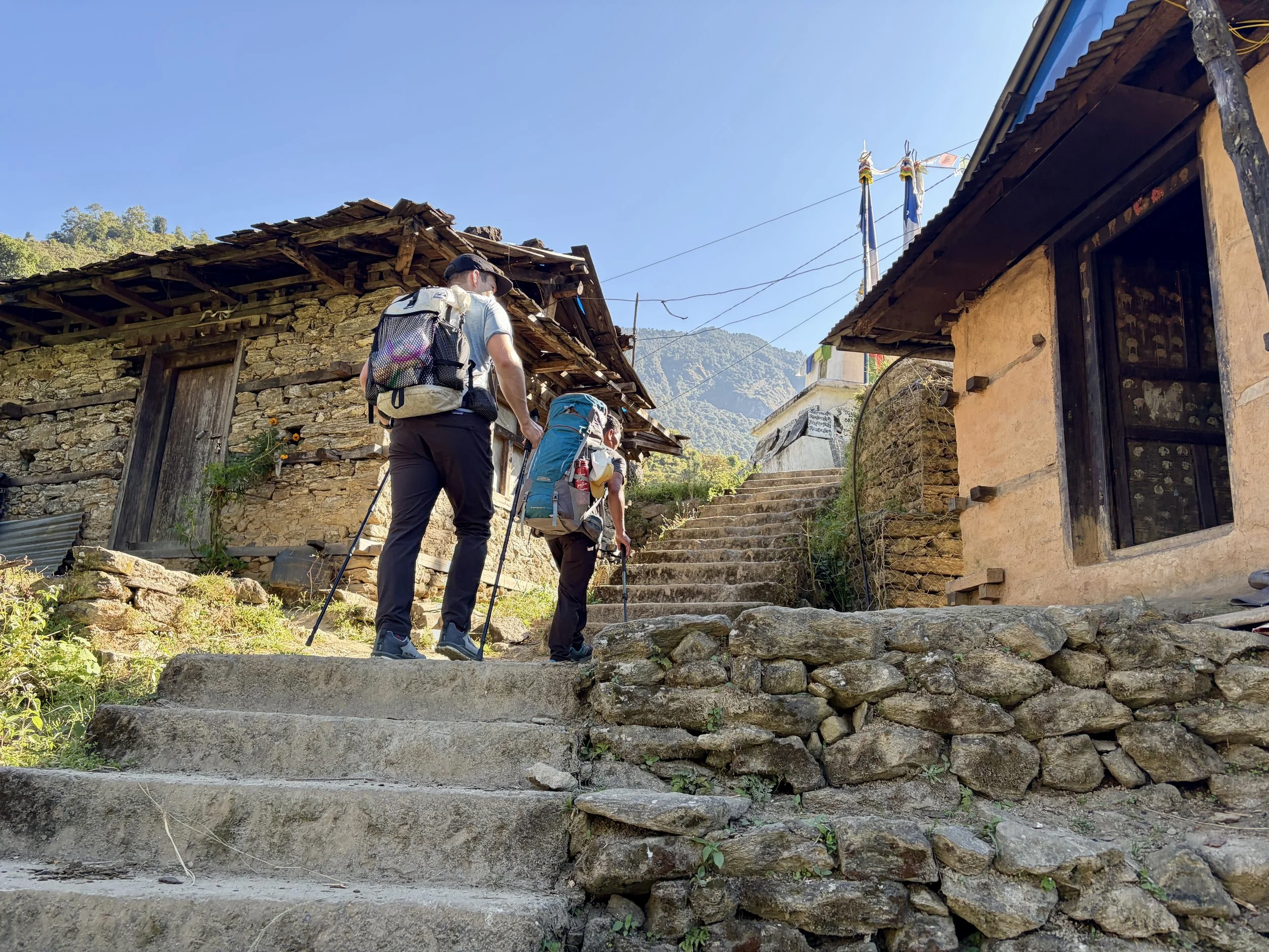 Mileage was short this day, but the trail (stairs) were quite steep and our guide said a short mileage day was necessary as the porters’ loads would all be the heaviest they’d be on this trip and the temperature the warmest. We did gain over 2,100 vertical feet in 1.75 miles, and considering how much I was sweating myself with just a day pack, I understood the decision. It allowed us a nice, easy afternoon to enjoy the views and relax. I was able to take a warm shower and do a little laundry, which was appreciated.