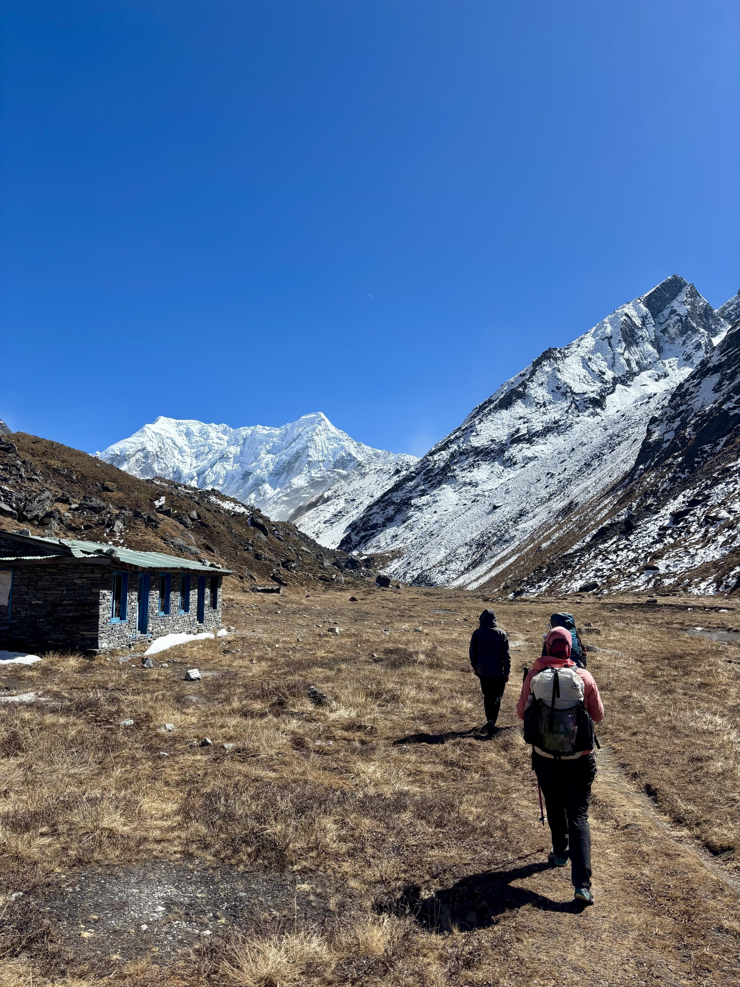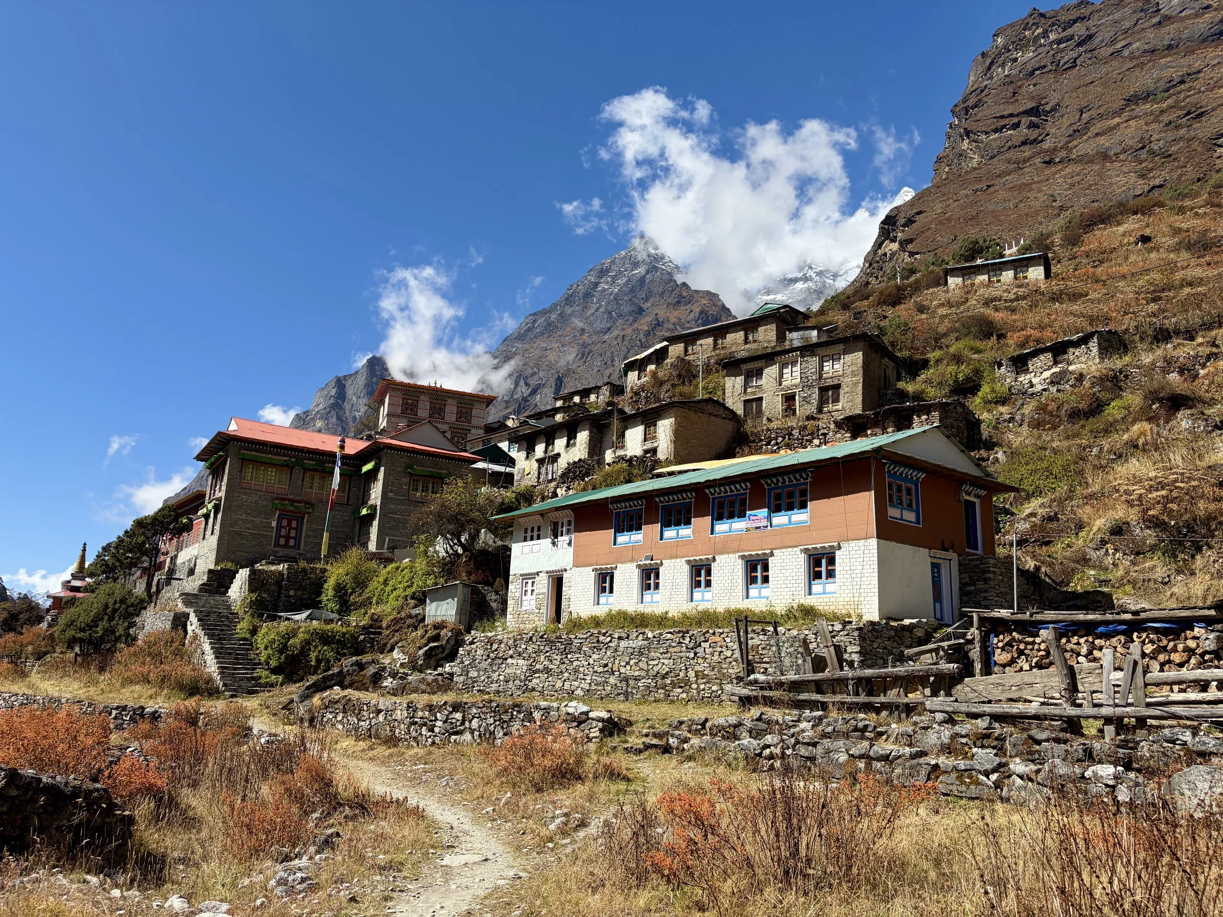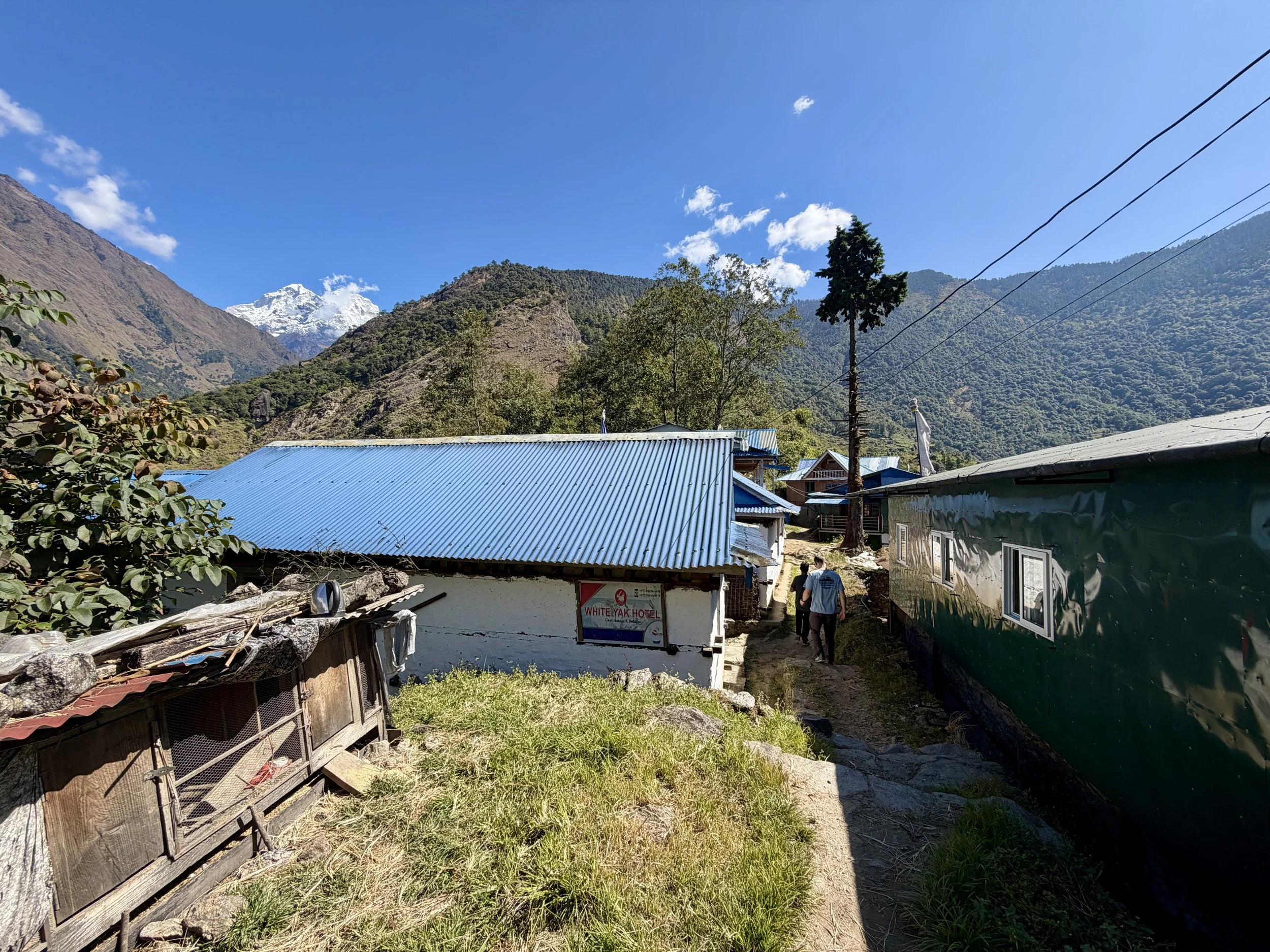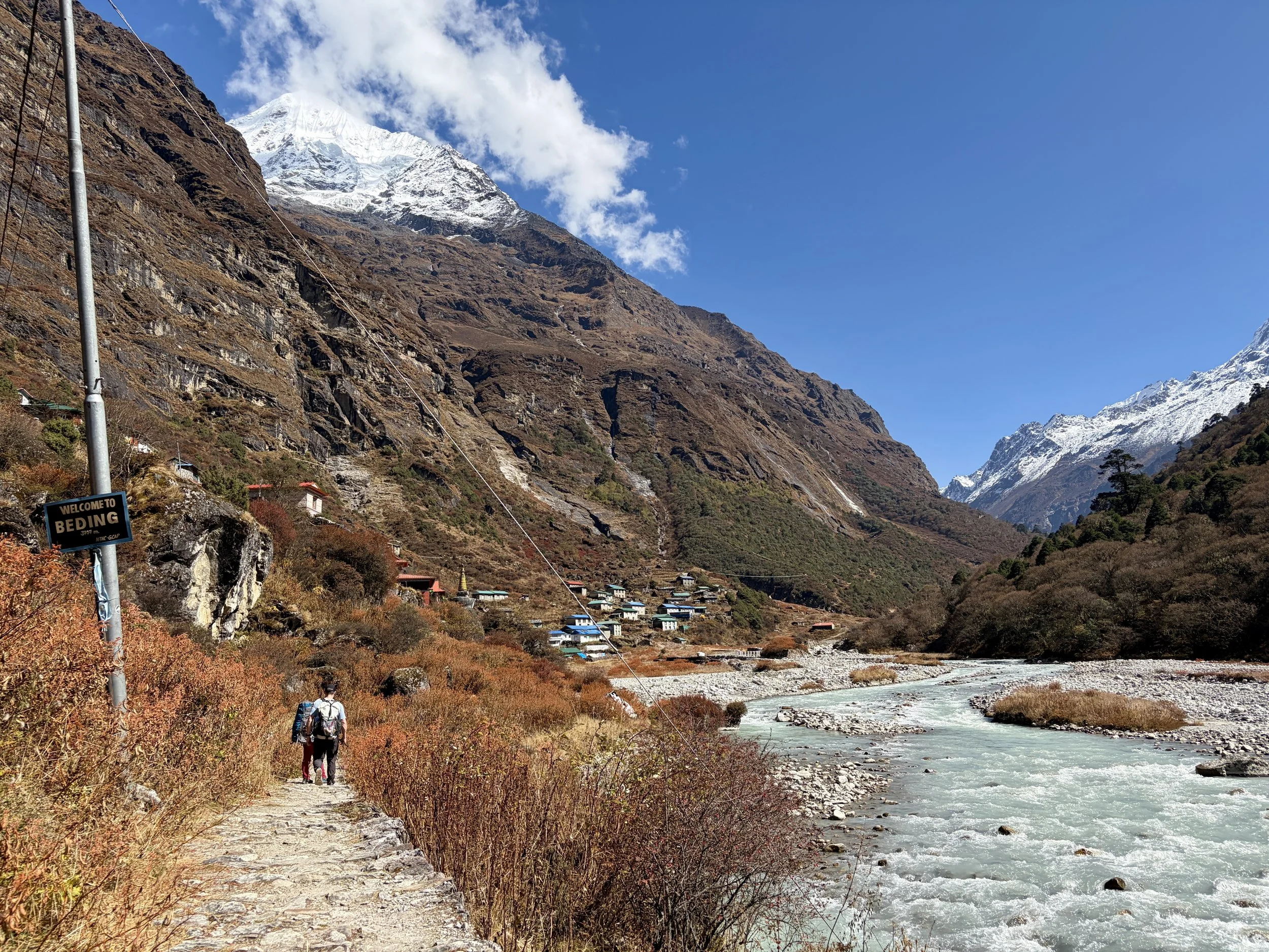 After another 20 minutes of hiking, we found ourselves at a teahouse where we decided to stop for some tea and cookies. After our break, we continued our journey and started getting some beautiful views of Chekigo. The trail meandered through some villages that didn’t look like they were very lived in anymore, and we soon found ourselves in Beding, where we’d have lunch and also spend the night. After a big lunch of vegetable fried rice, dal bhat, and of course some tea, we relaxed for the rest of the afternoon and evening.