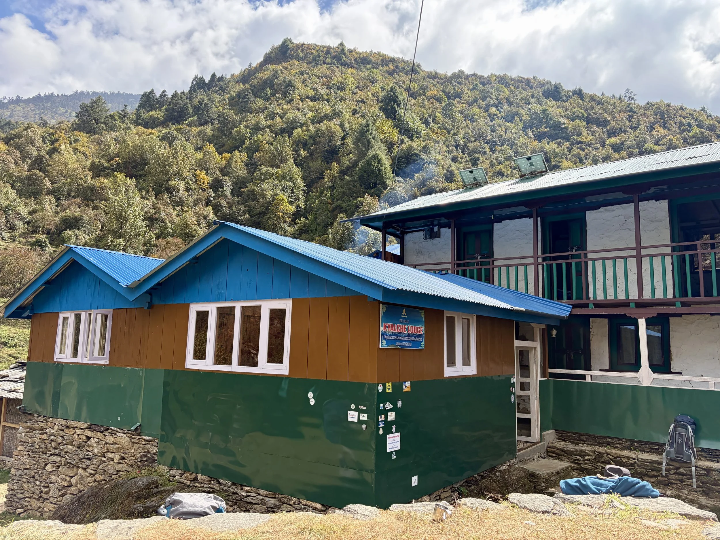 On our third day we woke up for 7am breakfast and were on the trail by 8am. We headed up into the valley above the Rolwaling Kosi River. Today’s hike would once again involve a fair amount of elevation gain for the mileage. We found ourselves ascending quite a few stairs again throughout the day. We encountered a mix of locals, Nepali tourists, and international tourists on the trail. After a few hours we stopped at a tea house for some sweetened hot lemon water and then continued along the trail to Kyalche, where we would have lunch. At times we had views of Gaurishankar, but more frequently it would be hiding in the clouds. After a lunch of fried rice and lo mein, we walked for another half an hour to the small village of Dongang. We ordered ourselves a pot of honey lemon ginger tea and settled in for the rest of the day.